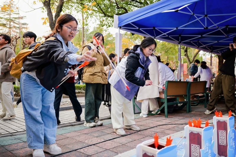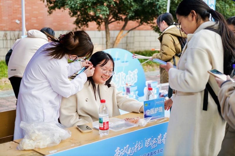 现场还开设了“婚育新风主题集市”,设置中医调护、体重管理、心理支持、政策咨询、趣味运动等多个互动展位。同学们通过体验式参与,在轻松氛围中了解生育支持政策、优生优育知识及健康服务资源,切实感受全社会为青年幸福“保驾护航”的温暖关怀。