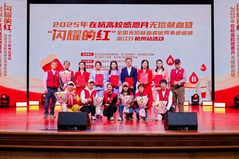 从 “三免政策” 的全国率先推出,到 “用血服务不用跑” 的便民创新;从十八载 “高校感恩月” 的持续开展,到 “闪耀的红” 巡讲的文化赋能,浙江始终以创新实践推动无偿献血事业发展。当青春热血遇上生命希望,当文化传播碰撞公益行动,这份 “闪耀的红” 必将照亮更多生命之路。期待更多健康适龄青年加入无偿献血队伍,用热血守护生命,为健康中国、健康浙江注入青春能量!